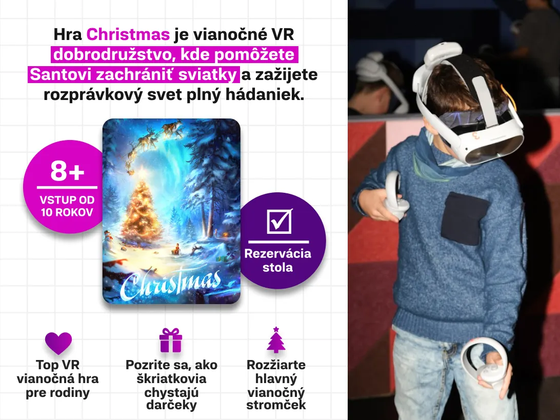 Odporúčame si hru rezervovať vopred, pretože počet VR okuliarov je obmedzený.Rezervácia vám zaručí 100 % miesto a nebudete musieť čakať.