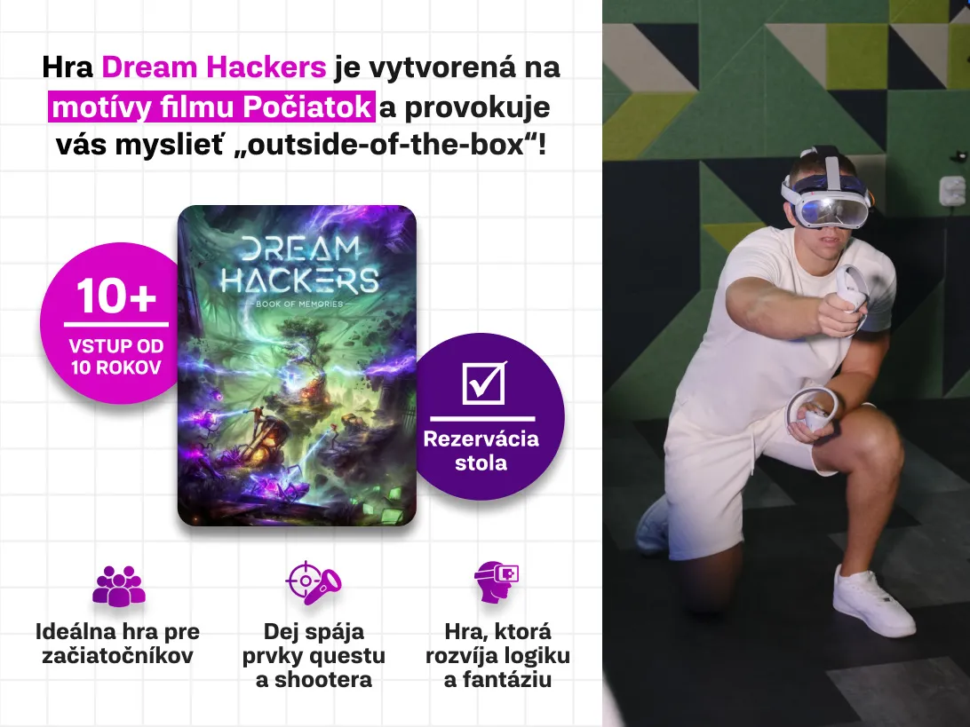 Odporúčame si hru rezervovať vopred, pretože počet VR okuliarov je obmedzený.Rezervácia vám zaručí 100 % miesto a nebudete musieť čakať.