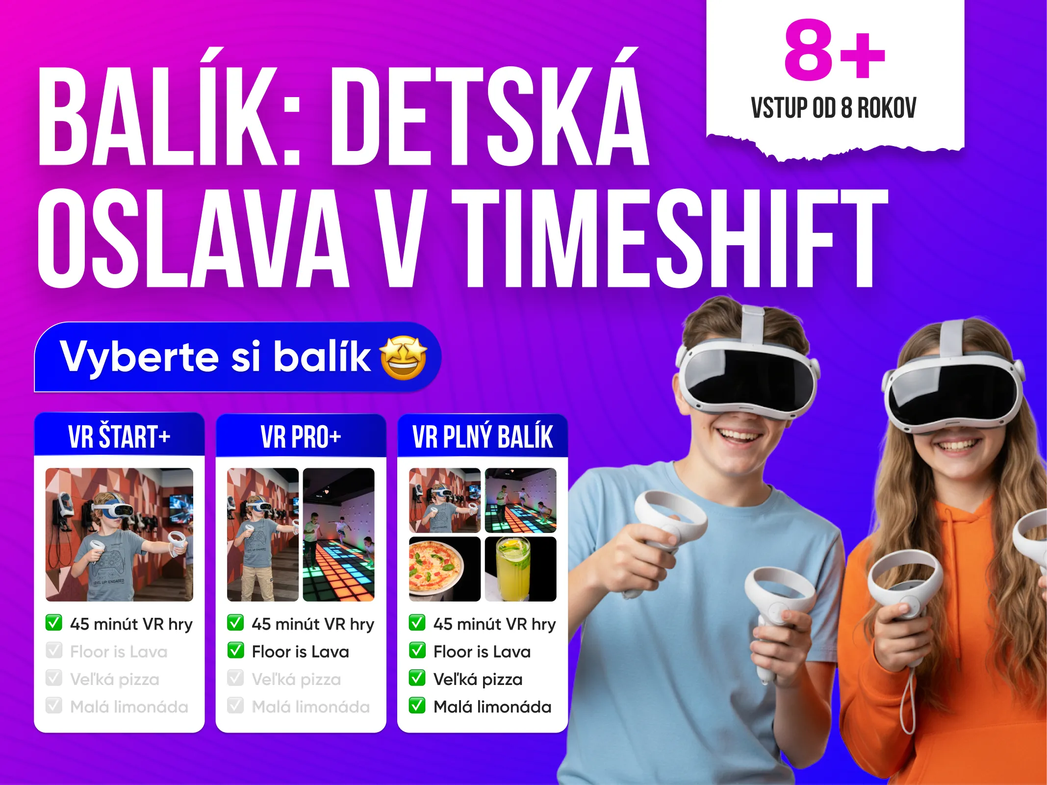 TimeShift – zábavné centrum na oslavy detských narodenín v centre Bratislavy, kde nájdete všetko pre dokonalú oslavu: hry vo virtuálnej realite, pizzu a nápoje a interaktívnu atrakciu "Podlaha je lava".
