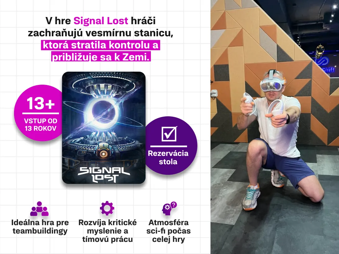 Odporúčame si hru rezervovať vopred, pretože počet VR okuliarov je obmedzený.Rezervácia vám zaručí 100 % miesto a nebudete musieť čakať.