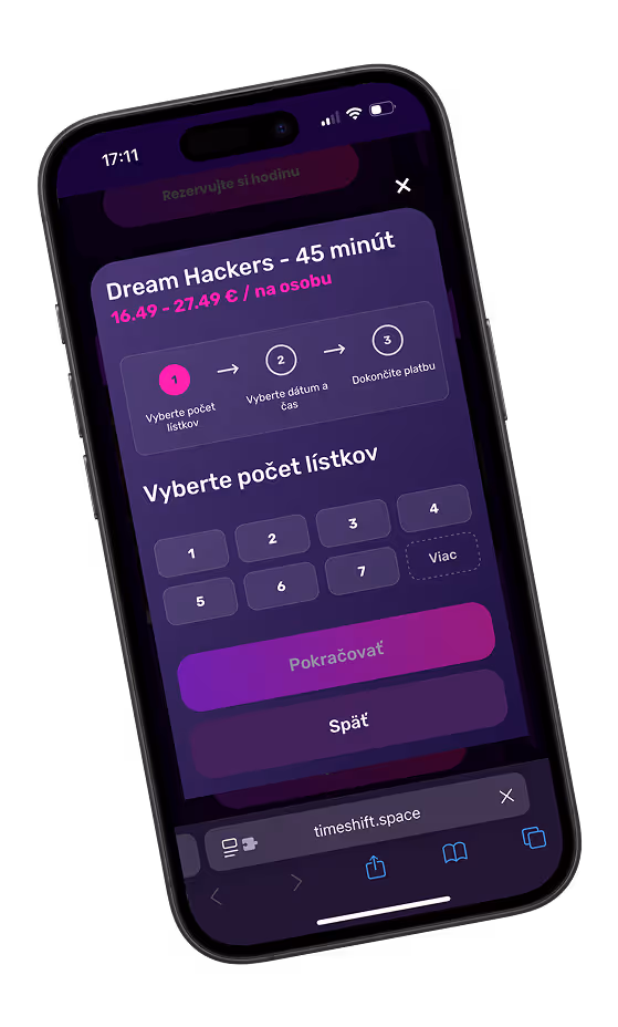 Vstupenku si kúpite online na stránke (rezervujete si dátum a čas) – s výberom hry vám na mieste pomôže administrátor.